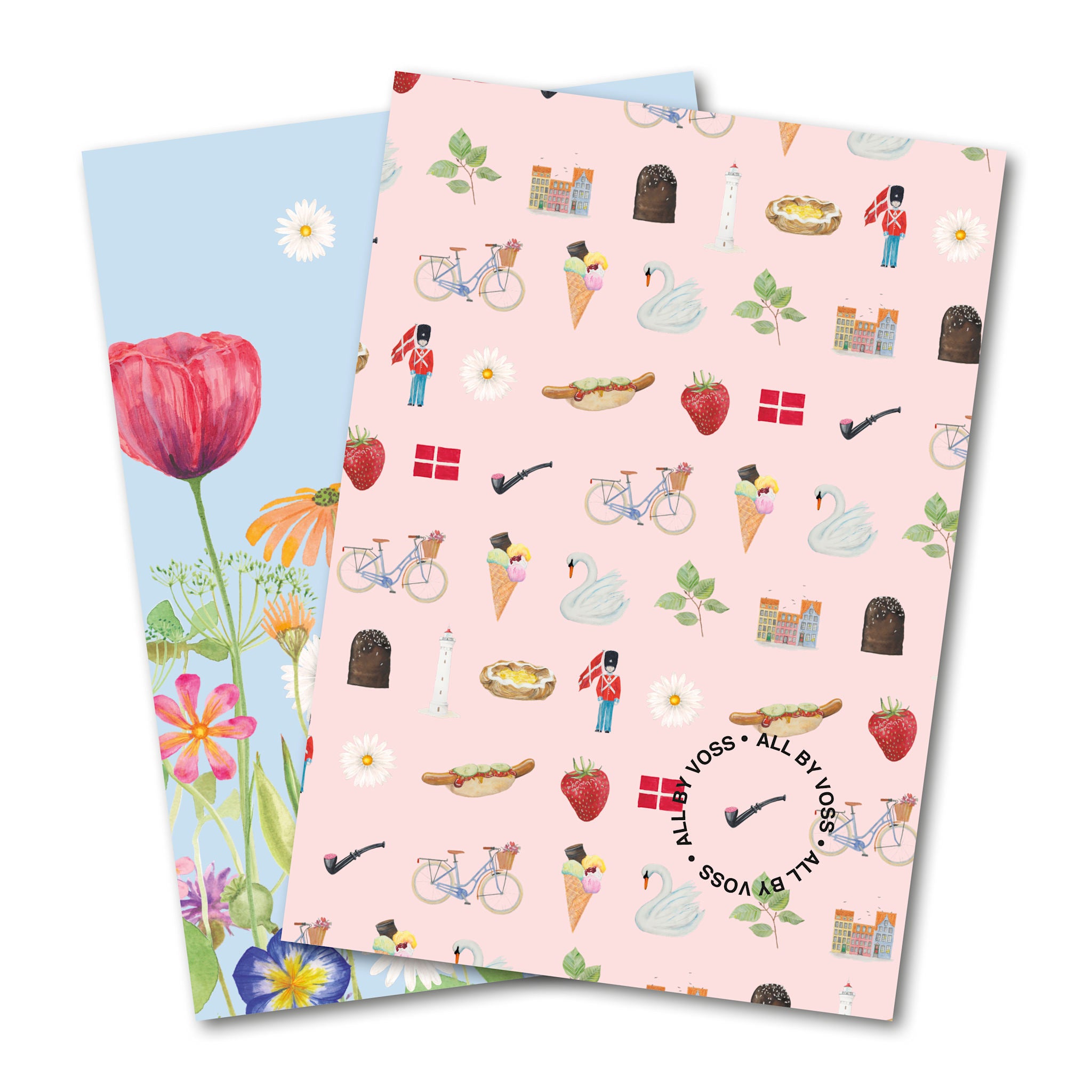 Sampakken indeholder ét eksemplar af Danish Notesbog og ét eksemplar af Wild Flowers Notebog.