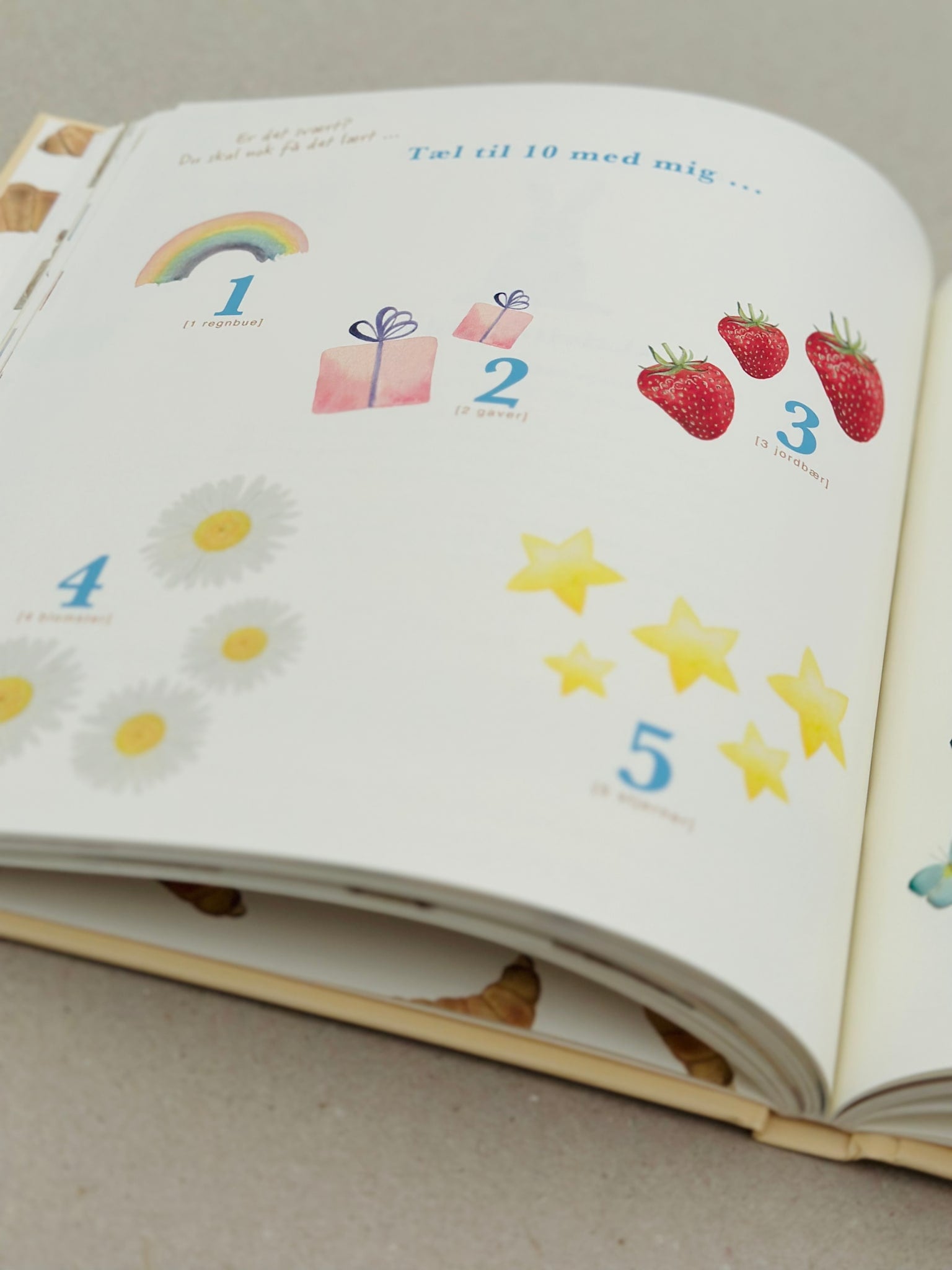 Derudover er der i bogen milepælekort, som kan klippes ud og anvendes til fotos. Der er også et par fine aktivitetssider midt i bogen, som gør at bogen bliver relevant at tage frem og kigge i sammen med barnet – på den måde husker man at få bogen frem jævnligt og få siderne udfyldt, og barnet bliver bevidst om, at bogen eksisterer.