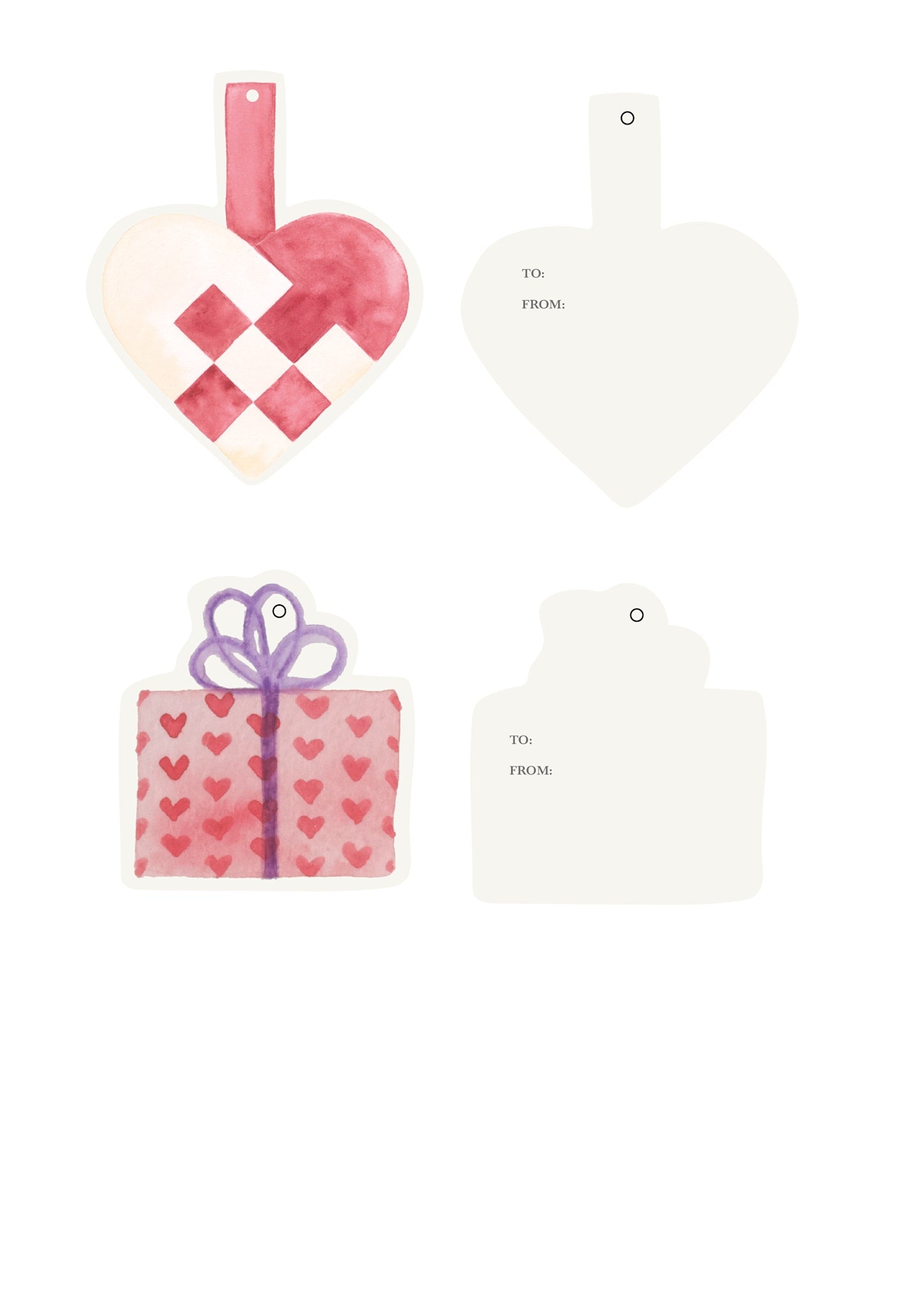 Gavemærkerne har glat, blank overflade på forsiden og er matte på bagsiden i postkort karton, så de er nemme at skrive på.