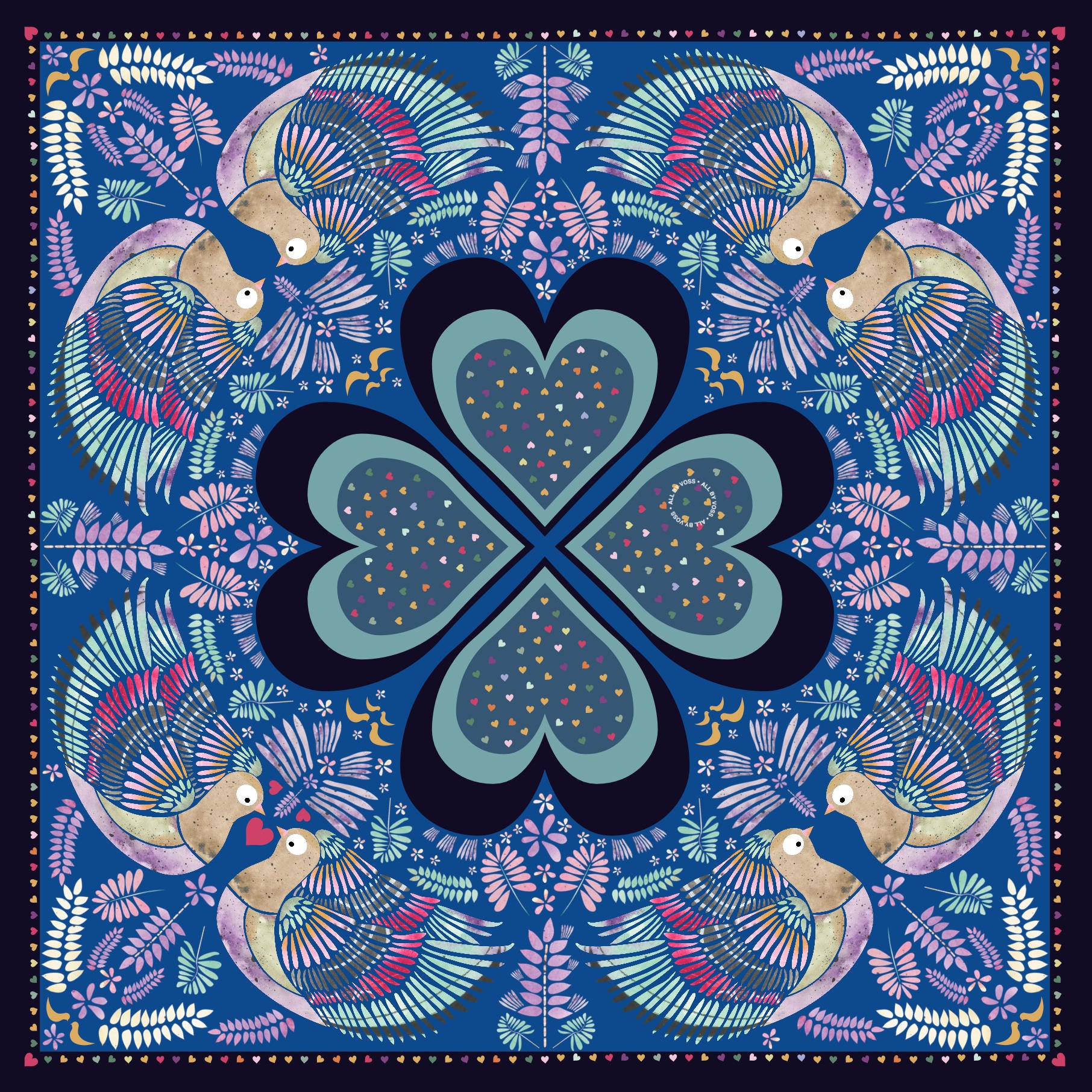 En skøn kombination af blå, blommefarvede og støvede grønne nuancer, smukt udsmykket med elegante motiver i de fineste farver. Et perfekt tørklæde til efterårsmånederne, da det er lunt, 100% naturligt og lækkert i kvaliteten. Det er dejlig blødt og lunt at have om halsen eller hen over skuldrene i de kølige måneder, fordi det er i blød bomuld.
