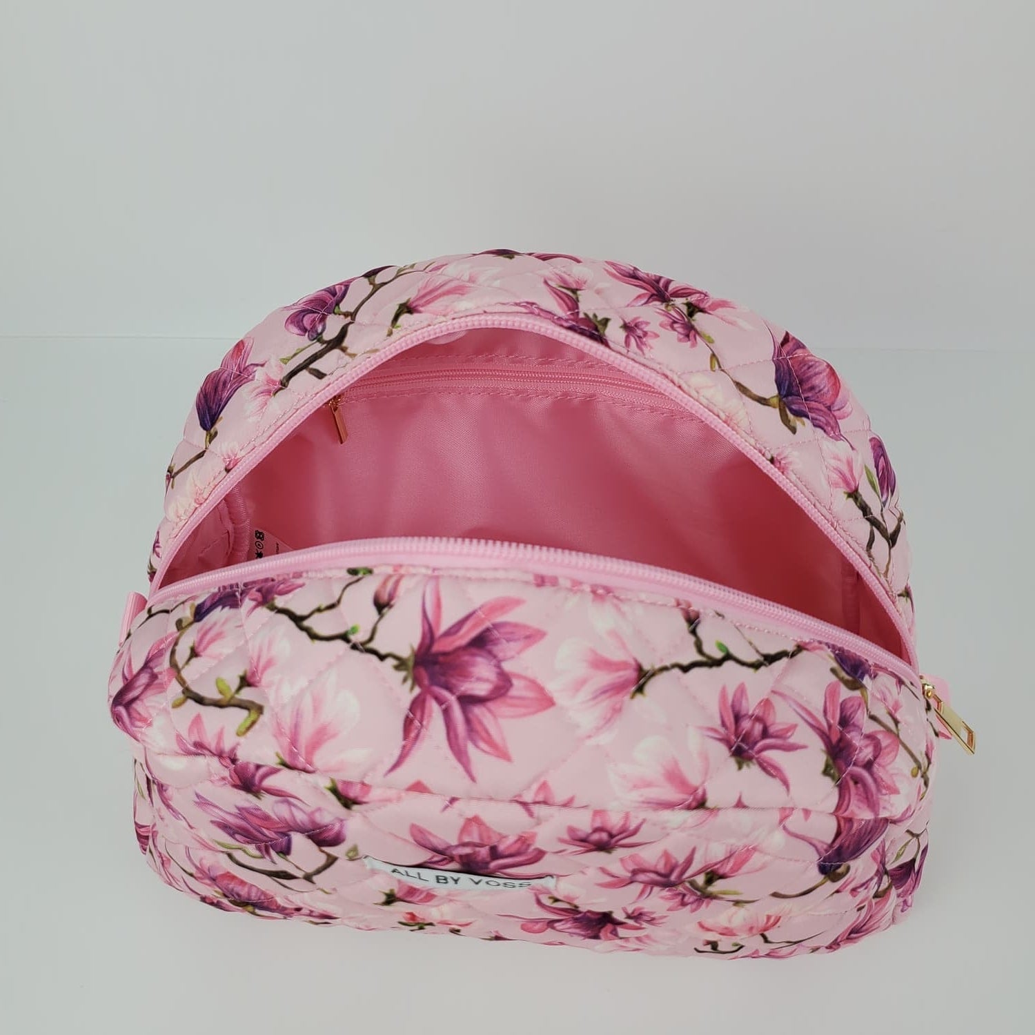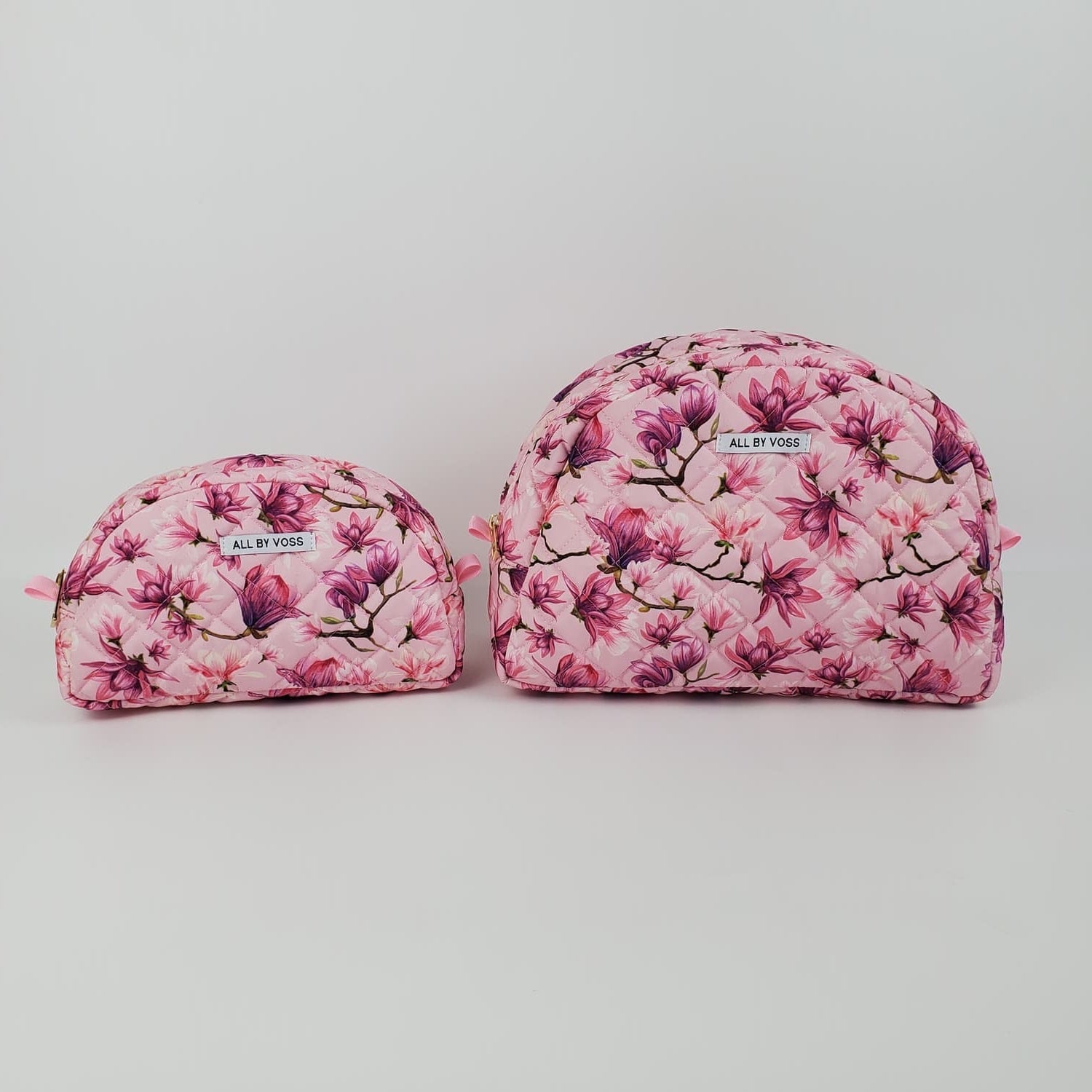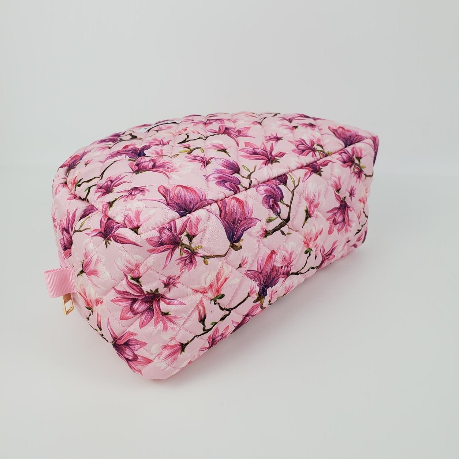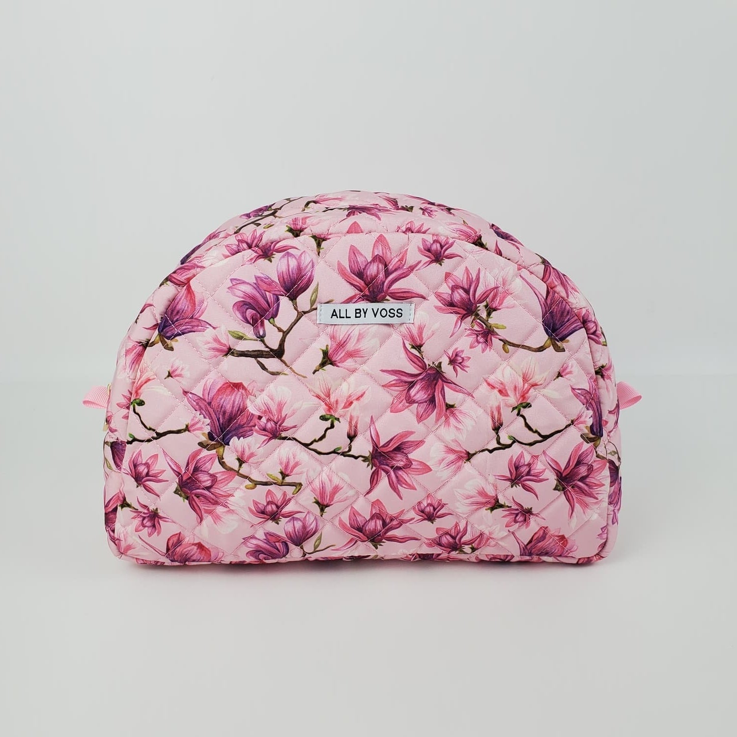 Forkæl dig selv eller én du holder af med denne slidstærke, smukke toilettaske med akvarelmotiver af magnolia på lyserød bund. Toilettasken er af kraftigt, quiltet genanvendt polyester, der tåler at blive brugt.