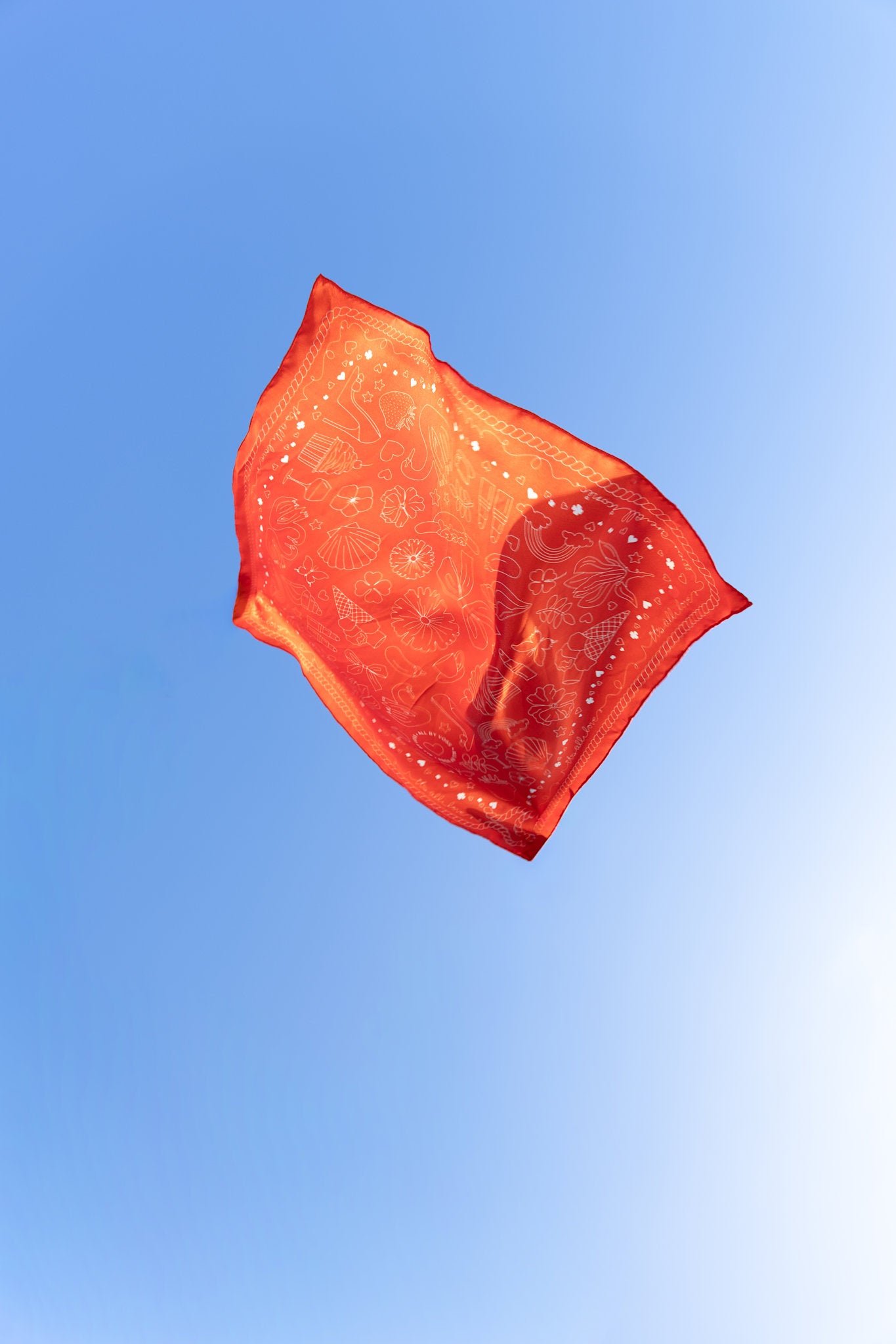 Tørklædet består af stærkt grafisk mønster bestående af søde og humoristiske ikoner, tegnet op digitalt, med udgangspunkt i nogle af ALL BY VOSS' mest anvendte akvarelillustrationer.